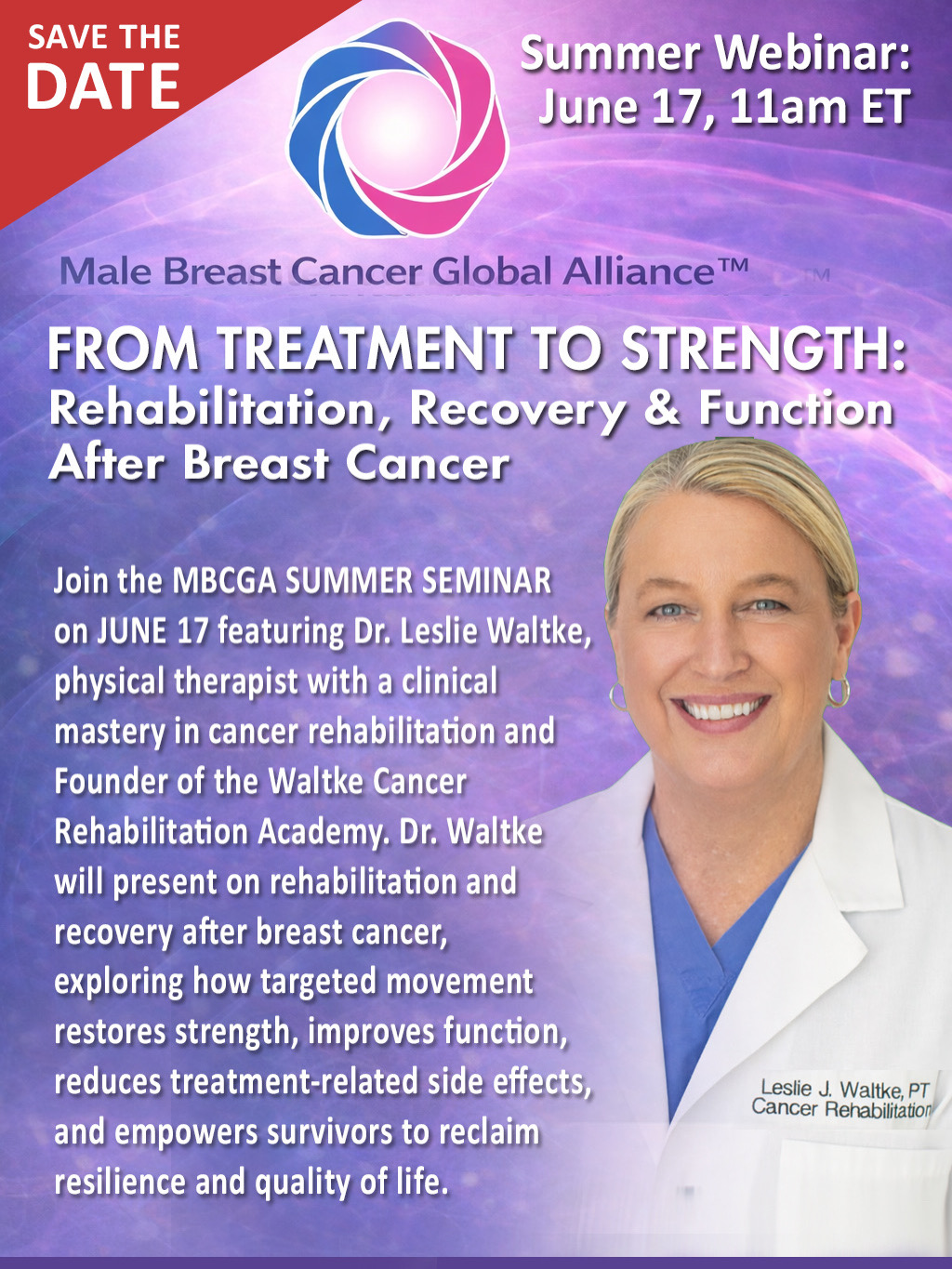 The Male Breast Cancer Global Alliance brings men with breast cancer together with researchers, clinicians and oncologists around the world for the purpose of advancing research, clinical trials and treatments for men diagnosed with breast cancer.